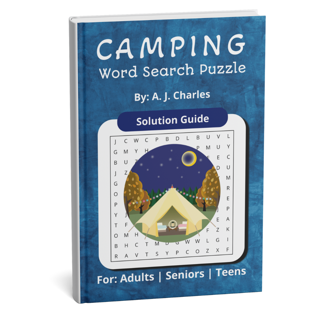 tep into the serene world of campfires, starlit skies, and forest trails — all through the relaxing fun of word search puzzles. This beautifully designed Camping Word Search Puzzle Book is more than just a pastime; it’s your perfect companion for outdoor adventures, peaceful evenings, and road trips alike.